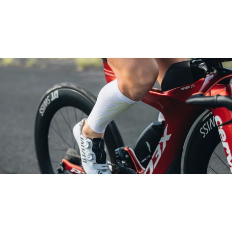 Inovatívna štruktúrovaná tkanina v prednej časti návleku (kombinácia AERO.DOTS a AERO PRÚŽKOV) umelo vytvára mikroturbulencie na prednej strane nohy tak, aby neboli cítiť na zadnej strane (čo by cyklistov skôr spomaľovalo).