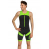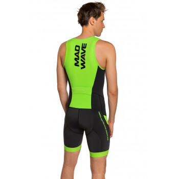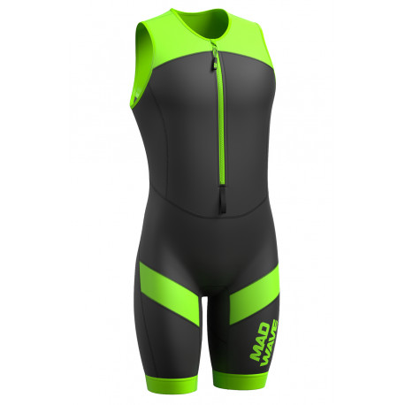 SWIMrunový dres bez cyklistickej vložky je vyrobený z vysoko kvalitnej látky odolnej voči oderu s odnímateľnými 5 mm neoprénovými panelmi. Neoprénové panely sú vložené do sieťovanej podšívky na hrudi a prednej strane stehien. Elastické neoprénové panely poskytujú dodatočný vztlak a stabilizujú polohu tela vo vode pri plávaní v topánkach. To umožňuje športovcovi ušetriť energiu na fázu behu. Oblek tesne prilieha k telu, účinne podporuje svaly a zlepšuje hydro a aerodynamiku športovca.